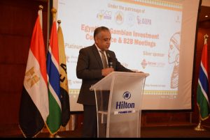 إنه لمن دواعى سرورى أن أقف اليوم هنا بصفتى رئيساً لجمعية رجال الأعمال المصريين الافارقة مرحبا بوفد دولة جامبيا وهي إحدى أهم الدول من الناحية الاستراتيجية فى غرب افريقيا