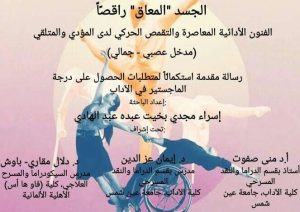شهد قسم الدراما والنقد المسرحي بكلية الآداب جامعة عين شمس، مناقشة رسالة الماجستير المقدمة من الباحثة إسراء مجدي، المعيدة بقسم الدراما والنقد المسرحي، وعنوانها “الجسد “المعاق” راقصًا: الفنون الأدائية المعاصرة، والتقمص الحركي لدى المؤدي والمتلقي” بإشراف أ.د. منى صفوت، والدكتورة إيمان عز الدين، بقسم الدراما بآداب عين شمس، والدكتورة دلال مقاري- باوش، مدرس السيكودراما والمسرح العلاجي، كلية فاو ها إس الألمانية الأهلية.