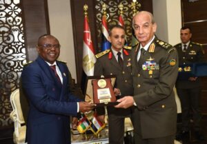 إلتقى الفريق أول / محمد زكى القائد العام للقوات المسلحة وزير الدفاع والإنتاج الحربى الفريق / راكوتواريجونا جوسوا وزير الدفاع الوطنى لجمهورية مدغشقر يرافقه اللواء / سافيلو لالا مونجا ديلفن رئيس أركان الدفاع لجمهورية مدغشقر وذلك بحضور الفريق / أسامة عسكر رئيس أركان حرب القوات المسلحة .