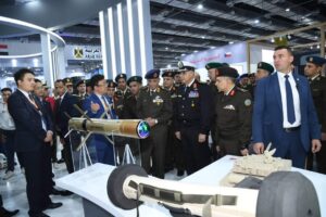 وعلى هامش فعاليات اليوم الثالث للمعرض قام القائد العام للقوات المسلحة بجولة تفقدية لأجنحة المعرض والمرور على عدد من الشركات العارضة وإستمع من ممثلوا الشركات إلى شرح لما تتضمنه المعروضات لأحدث المعدات والتكنولوجيات والأنظمة الأمنية المتطورة فى مجال الصناعات الدفاعية ، معرباً عن تقديره لكافة الدول والشركات المشاركة بالمعرض ، مختتماً الجولة التفقدية بالإشادة بكافة الإجراءات التنظيمية للمعرض والقدرة على إستقبال الأعداد الكبيرة من الوفود والزائرين المهتمين بالمجالات الأمنية والصناعات الدفاعية .