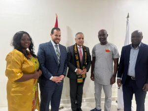 على مدار ثلاثة أيام اختتمت أعمال زيارة رئيس جمعية رجال الأعمال المصريين الأفارقة د/ يسري الشرقاوي والوفد المرافق له من شركات وأعضاء مجلس إدارة الجمعية إلى غانا – غرب أفريقيا – ضمن برنامج عمل مكثف والذي يتضمن كلًا من غانا وكوت ديفوار في رحلة هامة تمت بالتنسيق بين سفارة جمهورية مصر العربية بغانا سعادة السفير أيمن الدسوقي والتمثيل التجاري المصري – قطاع أفريقيا ومكتب تمثيل جمعية رجال الأعمال المصريين الأفارقة بغانا وصرٌح الشرقاوي بأن هذه الزيارة حملت عدة أهداف علي رأسها التحضير لبعثة تجارية كبرى لغرب أفريقيا تضم ما يقرب من 50 شركة مصرية وذلك خلال يوليو 2024 بهدف دعم زيادة التبادل التجاري المصري مع مجموعة الايكواس وهي دول غرب أفريقيا الناطقة بالفرنسية وعددها 15 دولة ، كما حملت الزيارة دعم التوسع في تواجد المنتجات المصرية بغانا في ظل الطفرة التي تحققت في العامين الماضيين والتي صعدت فيها الصادرات المصرية من 60 مليون دولار إلى ما يقرب من 500 مليون دولار بفضل جهود السفير المصري وجهاده المعاون.