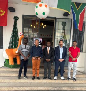 و تزامناً للرحلة مع اجواء بطولة امم افريقيا ٢٠٢٤ والتي تستضيفها العاصمة ابيدجان حرص رئيس الجمعية د الشرقاوي والوفد المرافق تحقيق اهداف لجنة الاستثمار الرياضي بالجمعية وتم في ذلك عقد عدد من اللقاءات مع رؤساء بعض الاتحادات المرافقين لبعثاتهم وكذا البعثات الاعلامية وذلك بهدف الترويج وابرام التعاقدات لمنتجات النجيل الصناعي و احتياجات الملاعب الرياضية وكذا الملابس الرياضية و عدد من المنتجات المصرية التي تدخل في صُلب صناعة الرياضة وفتح افاق تصديرية في قطاع الاستثمار الرياضي المتنامي افريقيا بشكل متزايد جدا.