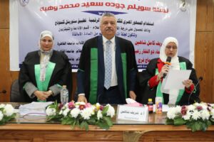 وتكونت لجنة المناقشة والحكم من كلا من ا د شريف كامل شاهين أستاذ المكتبات والمعلومات بكلية الآداب بجامعة القاهرة : مناقشا ورئيسا ، وا د شيماء ذو الفقار زغيب أستاذ الإذاعة والتليفزيون بكلية الإعلام بجامعة القاهرة مشرفا ، وا د الأميرة سماح فرج أستاذ الإذاعة والتليفزيون بكلية الإعلام بجامعة القاهرة مناقشا .
