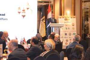 وقد أعرب عن سعادته قائلًا أنتهز هذه الفرصة لكى أثني علي العديد من السادة السفراء الافارقة لدى مصر الذين يمدونا كل يوم بالمناقصات والمزايدات والفرص الاستثمارية ، ويسهلون للعديد من شركائنا اجراءات السفر ، كما قدم كامل الشكر إلى وزارة الخارجية المصرية وكل السادة السفراء ورؤساء واعضاء البعثات في أفريقيا علي كل العون والدعم في سبيل تحقيق أهداف الجمعية علي الوجه الأكمل.