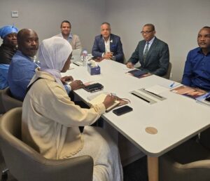 السيد جورج أوكيتالوني، الرئيس التنفيذي لغرفة التجارة والصناعة في مصر و جمهورية الكونغو الديمقراطية، وايضا السيد /طولا القنصل التجاري والاقتصادي بسفارة الكونغو الديمقراطية لدي مصر ، وعدد من المرافقين