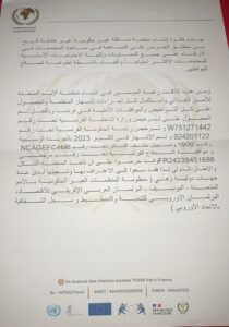 وقد تم التعريف بالمنظمة وأهدافها وأنشطتها ، واستخراج ترخيص وزارة الداخلية بفرنسا ، وترخيص رئاسة الحكومة الفرنسية بالمنظمة كمنظمة دولية والإشهار بالجريدة الرسمية ، وتسجيل المنظمة في منظومة المنظمات الغير حكومية بالأمم المتحدة اليونيسيف ، وتسجيل المنظمة أيضا بالبرلمان العربي الإفريقي للاقتصاد ، والبرلمان الأوروبي للتنمية والتخطيط ، وتسجيل المنظمة بسجل الشفافية بالاتحاد الأوروبي ، كما تم تسجيل المنظمة بوزارة الدفاع الفرنسية ، وتسجيل المنظمة بحلف الناتو .