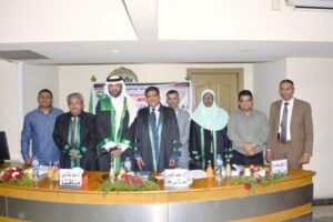 الأستاذ الدكتور محمد الحميري أستاذ العلاقات الدولية وعضو هيئة التدريس بمعهد البحوث والدراسات العربية مشرفا ، والأستاذ الدكتور عبدالسلام نوير أستاذ العلوم السياسية عميد كلية التجارة جامعة أسيوط سابقا وعميد كلية الاقتصاد والعلوم السياسية بجامعة المستقبل مناقشا ، والأستاذة الدكتوره إكرام محمد صالح أستاذ العلاقات الدولية بجامعة الزعيم الازهري بالخرطوم وعضو هيئة التدريس بمعهد البحوث والدراسات العربية مناقشا.