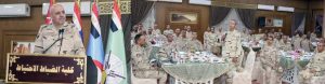 أحمد خليفة رئيس أركان حرب القوات المسلحة يتناول وجبة الإفطار مع أعضاء هيئة تدريس وطلبة كلية الضباط الإحتياط