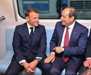 ثم استقل الرئيسان أحد قطارات الخط الثالث لمترو الانفاق بحضور رئيس الوزراء المصري الدكتور / مصطفي مدبولي وعدد من الوزراء بالدولتين بالاضافة الى عدد من رؤساء الشركات الفرنسية المنفذة لعدد من المشروعات العملاقة في مصر وذلك من محطة مترو عدلي منصور حتى محطة هشام بركات والعكس.