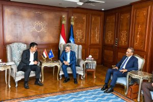 ضم الوفد، السيد/ سوهيون هوانج كبير مسئولي المشروعات الخارجية بشركة هيونداي كوربريشن، والسيد جايسون بارك الرئيس التنفيذي للشركة بمصر، والسيد أحمد بلال مدير التخطيط للشركة بمصر.