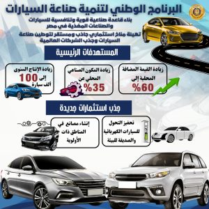 البرنامج الوطني لتنمية صناعة السيارات هو برنامج ينطلق من رؤية وزارة الصناعة لبناء قاعدة صناعية قوية تنافسية لصناعة السيارات والصناعات المغذية في مصر وتهيئة مناخ استثماري عالمي خلق بيئة جاذبة ومستقرة لتوطين صناعة السيارات وجذب كبريات الشركات العالمية، وتعميق التصنيع المحلي، وتحقيق الجدوى الاقتصادية بتشجيع الوصول إلى حجم إنتاج كمي اقتصادي يسمح بخفض التكاليف وزيادة التنافسية، فضلاً عن دعم الميزان التجاري للحد من فاتورة استيراد السيارات ومكوناتها، وفي الوقت نفسه زيادة صادرات مصر من السيارات.