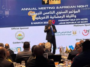 جاء ذلك خلال كلمته بالمؤتمر السنوي الخامس لجمعية رجال الأعمال المصريين الأفارقة، برئاسة الدكتور يسري الشرقاوي، رئيس مجلس إدارة جمعية رجال الأعمال المصريين الأفارقة، وحضور الدكتور محمدو لبرنج – عميد السلك الدبلوماسي وعميد السفراء الأفارقة بالقاهرة وسفير جمهورية الكاميرون لدى جمهورية مصر العربية، وعدد من سفراء وممثلو الدول والجاليات الافريقية، وبعض أعضاء مجلس النواب، وممثلي الهيئات الاقتصادية والحكومية والبنوك.